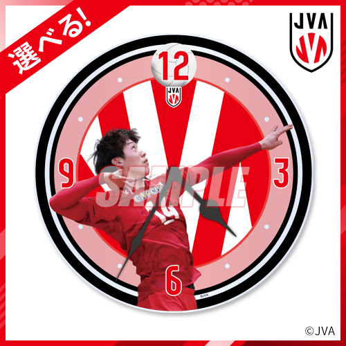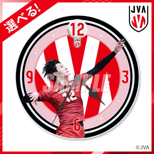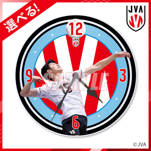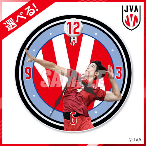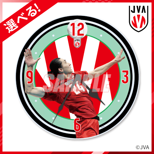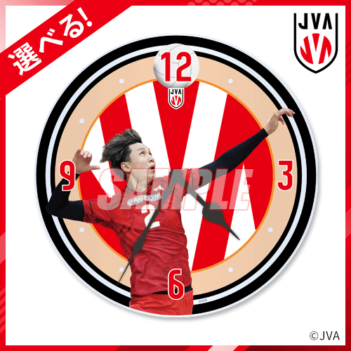 試合中のボールを打つ瞬間を切り取ったアクリルクロックです。選べる方式なので、お好きな選手をお選びください。写真:JVA/アフロスポーツ