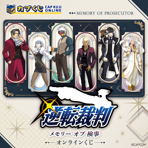 「逆転裁判」シリーズから歴代の検事が大集合!個性豊かな彼らを思う存分楽しめる、検事ファンのためのスペシャルなくじをご堪能あれ!